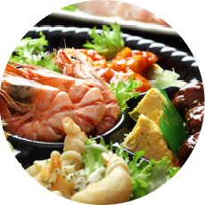 大惣では、「安心・安全・健康」をコンセプトに企業、学校へのお弁当、慶弔料理・仕出し料理など自然素材の活用、地元食材へのこだわり、徹底した衛生管理のもと確かな品質とおいしさを追及した心のこもったお料理のご提供で地域のお客様から大きな支持をいただいております。また給食、介護食事、仕出し料理、行楽弁当など、残食率を下げるためのメニュー開発や地産地消地元の食材のブランド化にも力を注いでいます。
