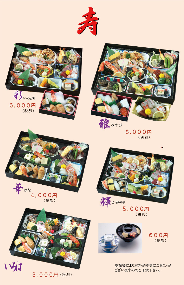 料理、正月料理、仕出し料理、さわら料理。岡山市、倉敷市、総社市など岡山県全域にご提供しています。